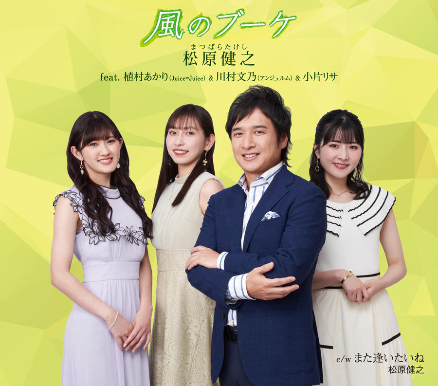 松原健之待望のニューシングル「風のブーケ」は、ハロー!プロジェクトの植村あかり(Juice=juice)・川村文乃(アンジュルム)と小片リサをフィーチャーしたボーカル・カルテット。