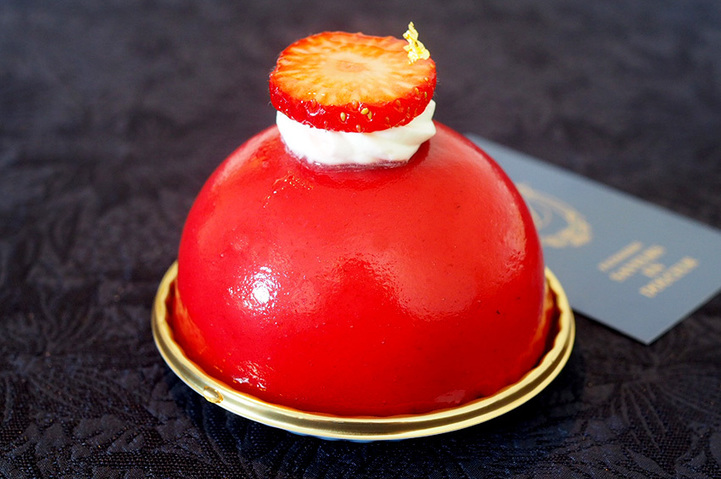 鮮烈な赤色が印象的なドーム型のケーキ。