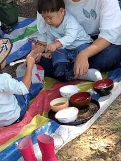 森の中で食べるご飯は美味しい。親子で参加して、自由に会話を楽しんで・・・