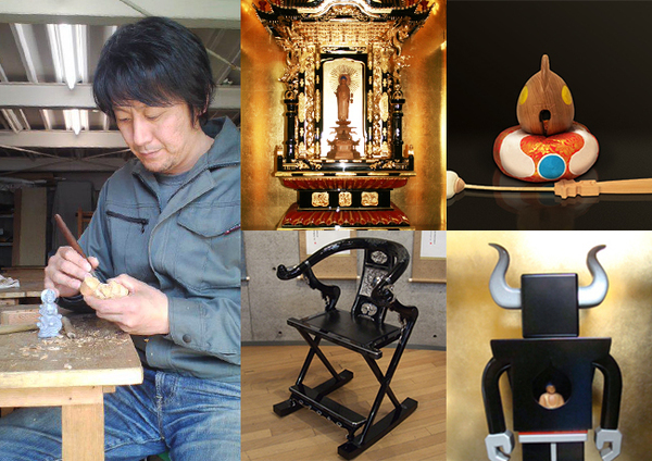 伝統工芸三河仏壇の職人の技を継承し、活躍の場を拡げる方法として、従来の三河仏壇の製造・販売とともに、特撮・アニメをモチーフに制作した仏具、アートとの融合で制作した木製フィギュアなど新しい形の仏壇、仏具を開発し、アメリカ、ドイツでの展示会も行いました。