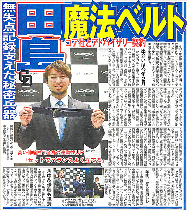 「つけてスポーツするだけで、体幹を鍛える、魔法のベルト」各球団からオファーが殺到中。