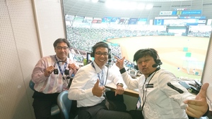 直前番組の「スポ音」も同じくメットライフドームの放送席から。