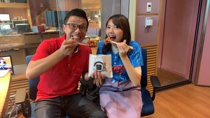 レポドラ中継で紹介した「丸与商店 黒川店」の唐揚げをほおばる二人♪