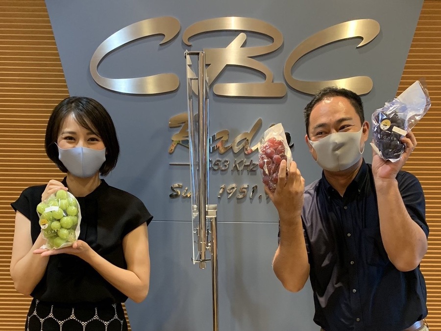 「今年は天候の影響がいろいろありましたけれど、ぶどうの出来はいかがでしょうか?」と尋ねる柳沢彩美アナウンサー。