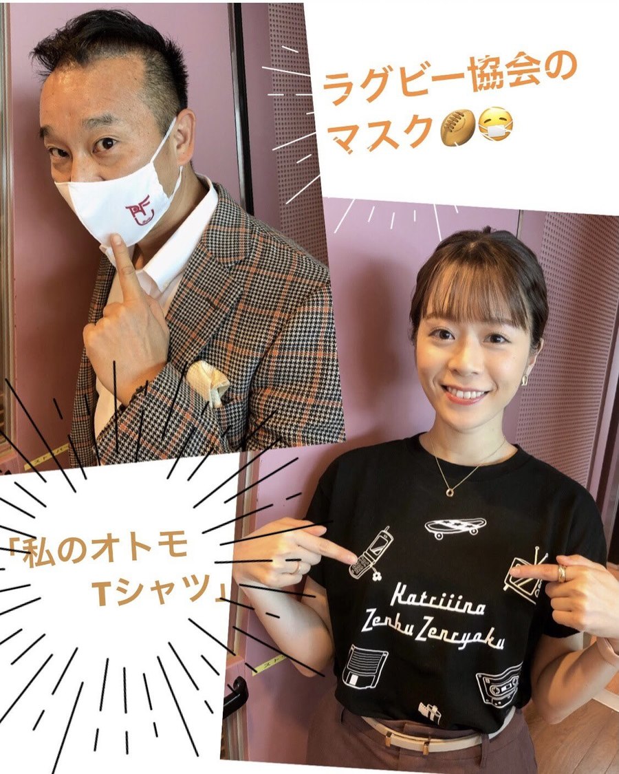 ↑山内アナが着ているTシャツは「カトリーナの全部全力」