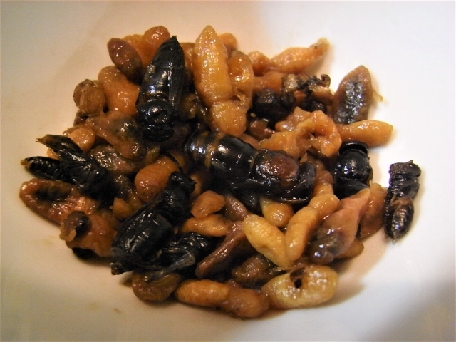 大きさによって食感が異なり、蜂の形をした「もうすぐ成虫のさなぎ」は、カリッとした食感。