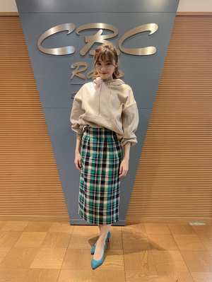 グリーンチェックのスカートで引き締め効果(*'ω'*)
