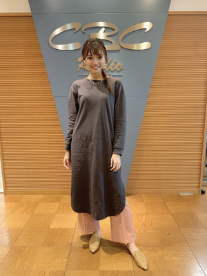 深みカラーのワンピースに春色パンツをコーディネート♪