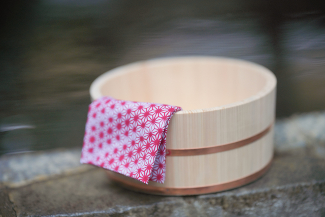 一番上の浴槽の湯が最も熱く(43度)、下に行くにつれてぬるくなります。