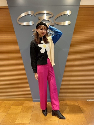 個性的なお花のニット&ビビットなピンクパンツ♪