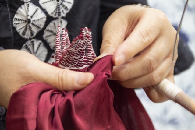 有松絞りとは江戸時代から、名古屋市有松町と鳴海町に伝わる染色技法です。