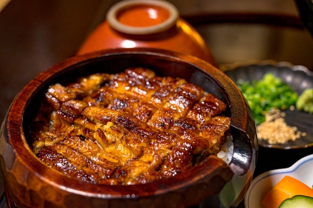 ひつまぶしの食べ方は、最初はそのまま普通に食べて、次に薬味を載せて食べて、最後は出汁を入れてお茶漬け風に食べます。
