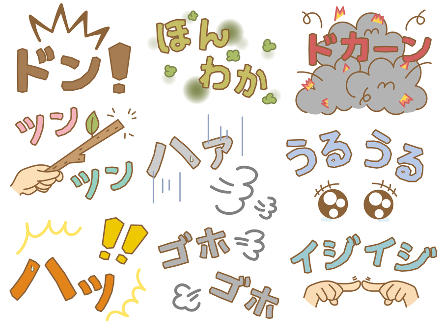 「オノマトペ」とは、物理的な音を表す擬音語と、音を伴わない状態を表す擬態語の2つがあります。