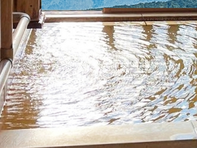 泉質は含鉄・ナトリウム・カルシウム-塩化物泉。湯は赤褐色で鉄の香り。消毒はしていますが塩素は使わず、湯の香りを損ねることはないそうです。