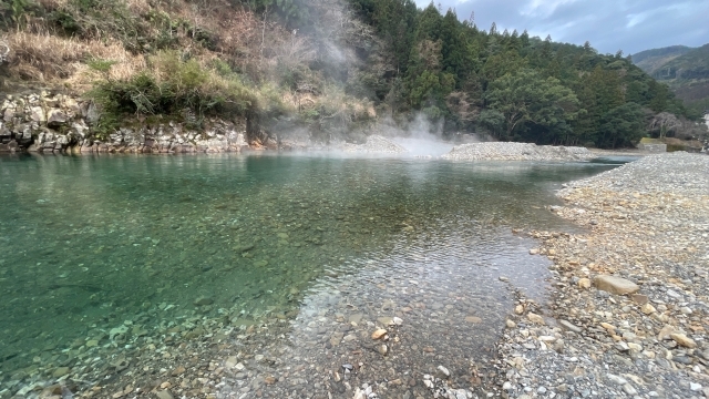 川湯温泉は和歌山県、奈良県、三重県の県境あたりにあり、熊野川の支流で大塔川沿いにある温泉街です。