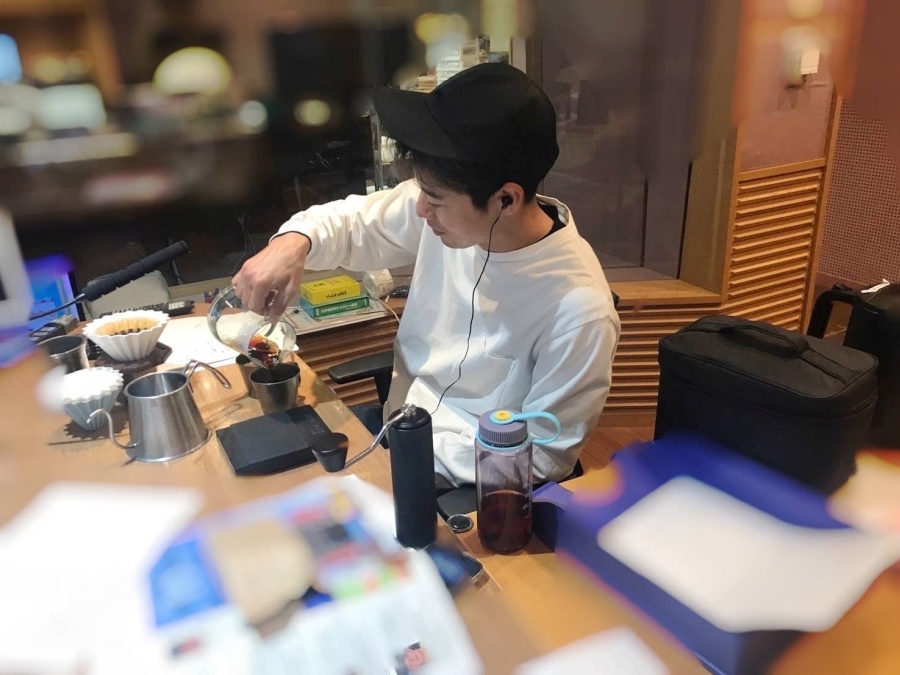 中でもフィルターを通して抽出するハンドドリップタイプのコーヒーについて、実際に道具や豆を持ち込んで、その場で豆から挽いたコーヒーをスタジオで振舞いました。
