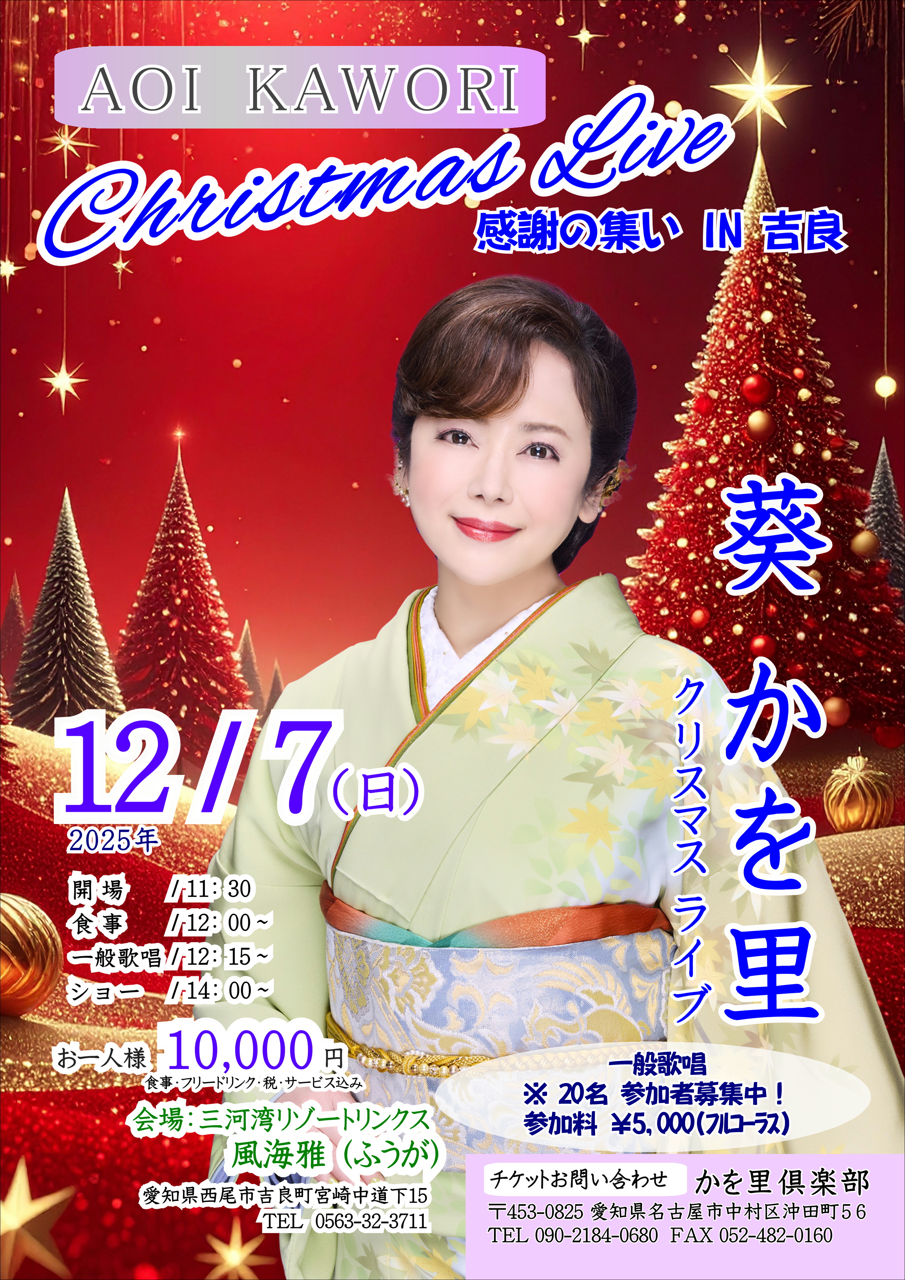12/7(日)、西尾市吉良 三河湾リゾートリンクス 葵かを里クリスマスライブを開催します。