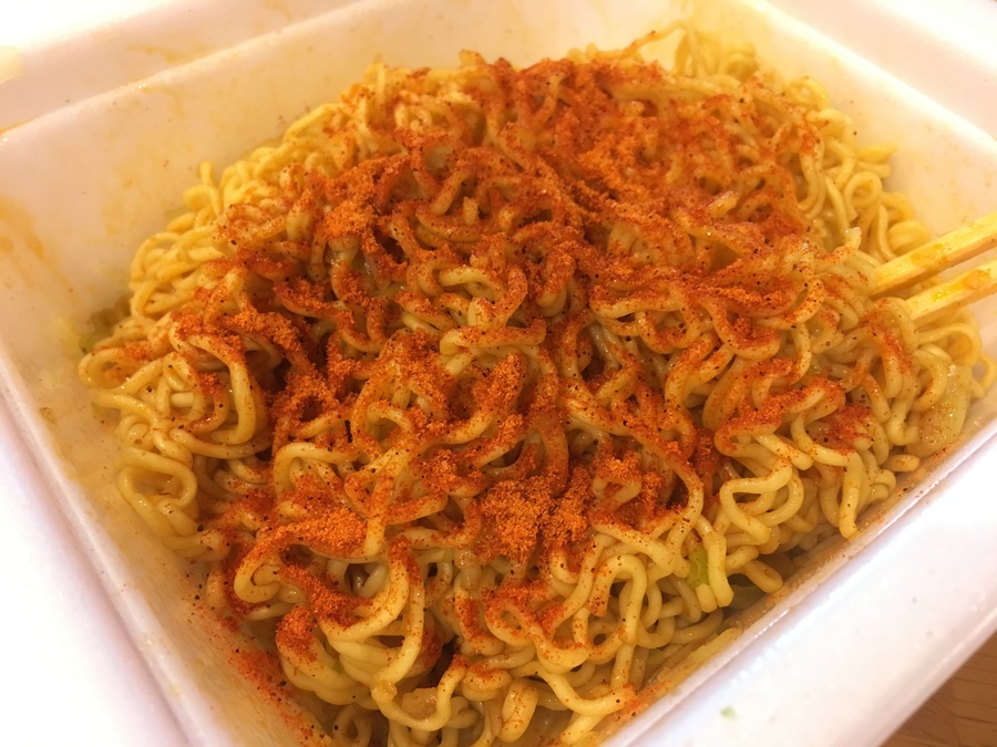 たっぷりかけて焼そばのキャンバスを真っ赤に染めて