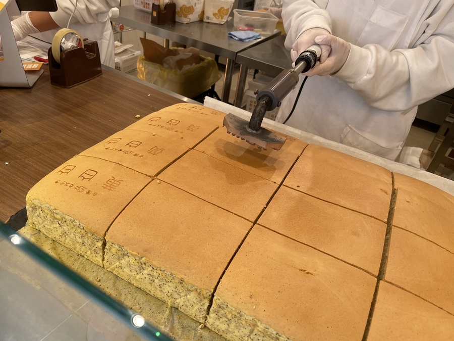 店名の焼印がされた『台湾カステラ』は想像以上な分厚さがありそうです。