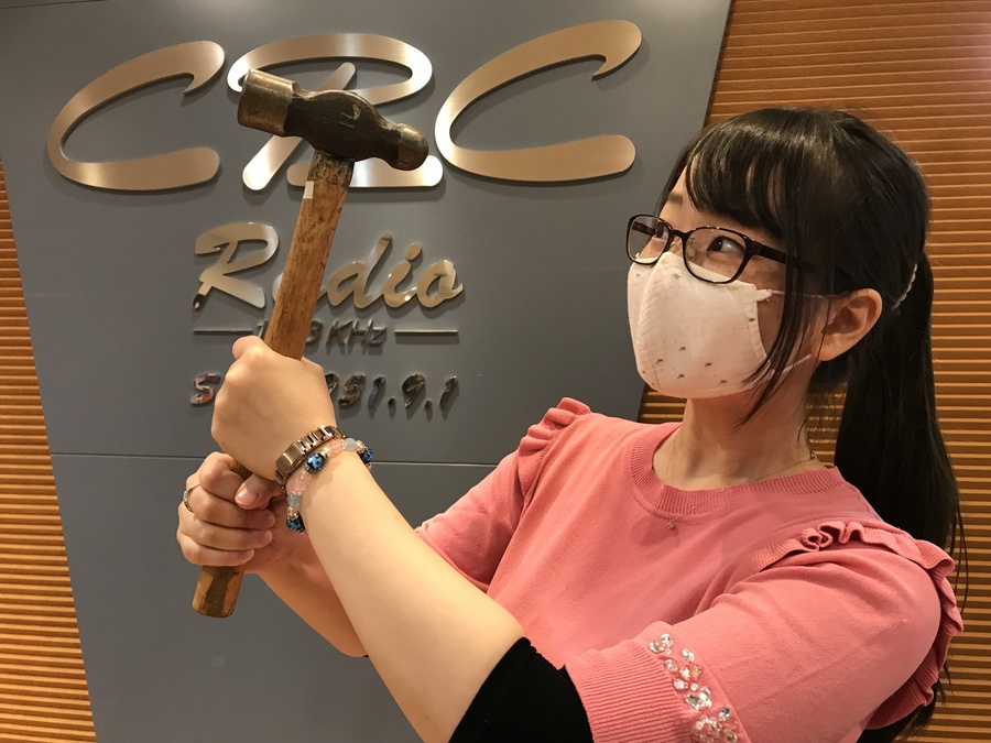 「タオルでくるんで、ハンマーで優しくたたき割ってください」