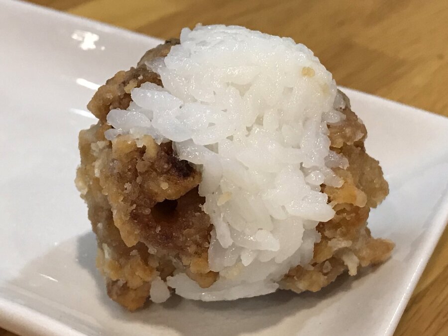 どうみても”唐揚げおにぎり”のような見た目になっていますが…