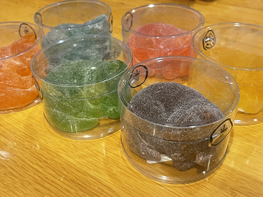 グミとゼリーの中間くらいの弾力のあるグミキャンディで