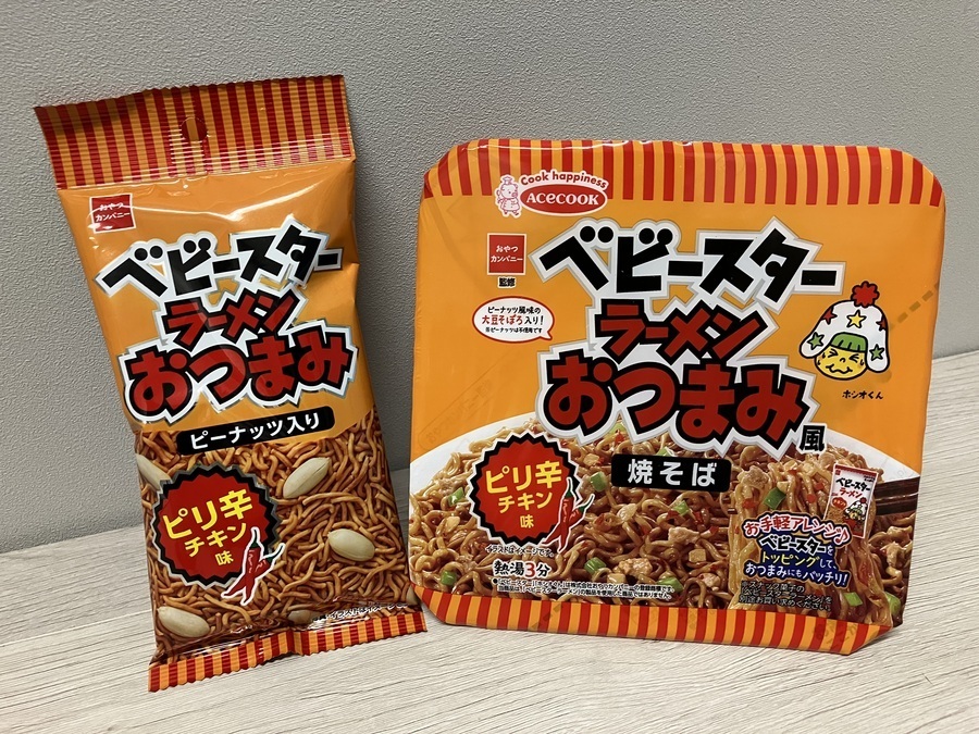 エースコックの担当者がこの「ベビースターラーメンおつまみ』の大ファンで、おやつカンパニーにコラボを持ちかけたそうです。