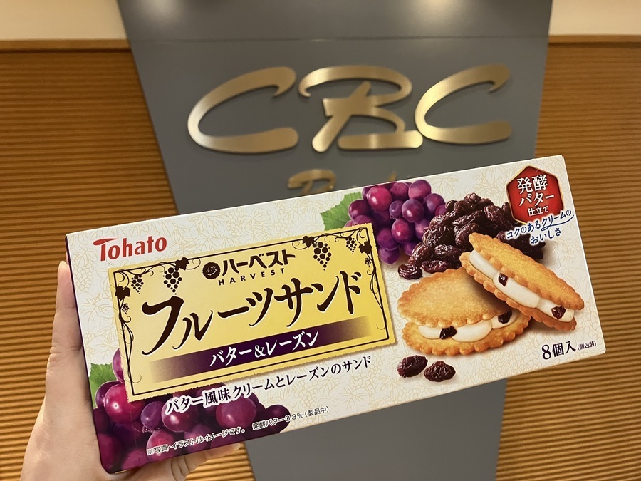 薄焼きのビスケット『ハーベスト』にバター風味のレーズンと、発酵バターを加えたクリームをサンドしています。