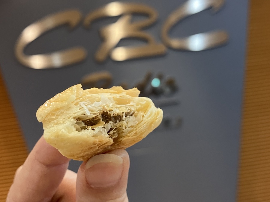 ビーフの旨味に独自ブレンドのスパイスを効かせたビーフカレー味のフィリングを包んでいます。口に入れた瞬間、河原崎は興奮気味の様子。