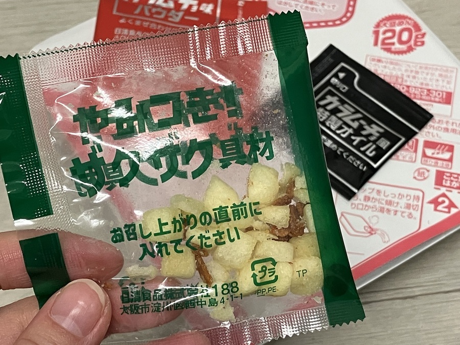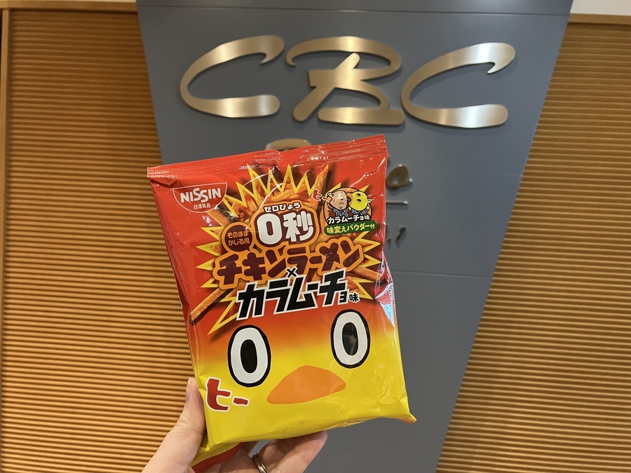 興奮冷めやらぬまま、もうひとつのコラボ商品『0秒チキンラーメン カラムーチョ味パウダー付』を取り出す清水。