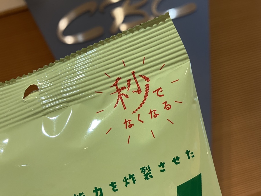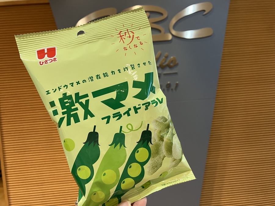 生地にえんどう豆を練り込み、サクっと揚げた後、さらにえんどう豆パウダーをまぶしてあり、「えんどう豆の潜在能力を炸裂させたスナック菓子」だそう。