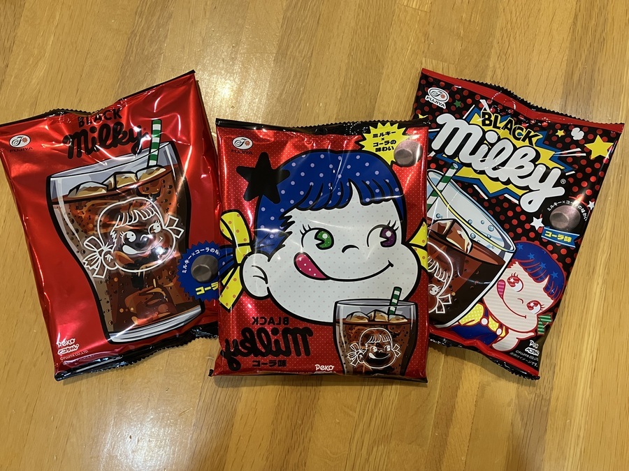 ポップなパッケージに彩られた「ブラックミルキー」ですが、その味は夏らしい清涼感のあるコーラ味とのこと。