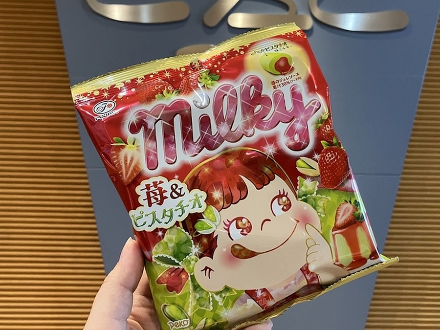 11月4日、不二家から『ミルキー(苺&ピスタチオ)』が発売されました。ピスタチオ味のミルキー生地と、濃厚な苺ジュレソースが使用されているそうです。