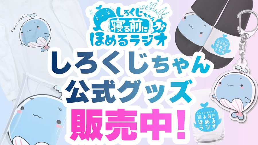 金曜日あさ5:25、月曜日20:00、『北野誠のズバリ(13:40ごろ)』など神出鬼没で放送中の『しろくじちゃんとアホロートルが明け方に/寝る前に/昼下がりにほめるラジオ』番組公式グッズができました。