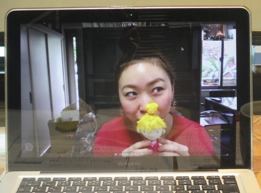 パソコン越しにお互いの顔を見ながら、小堀勝啓と近況を語り合います。