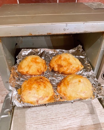 ピザ用チーズ(40g)をそれぞれ10gずつ乗せて、