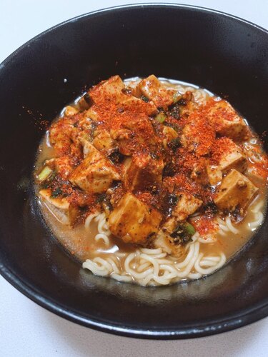 お総菜コーナーの麻婆豆腐(1人前)を乗せて、
