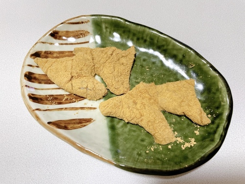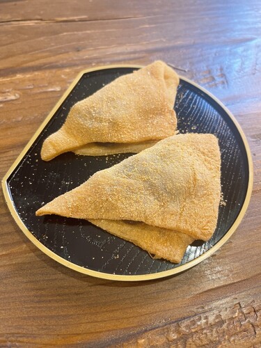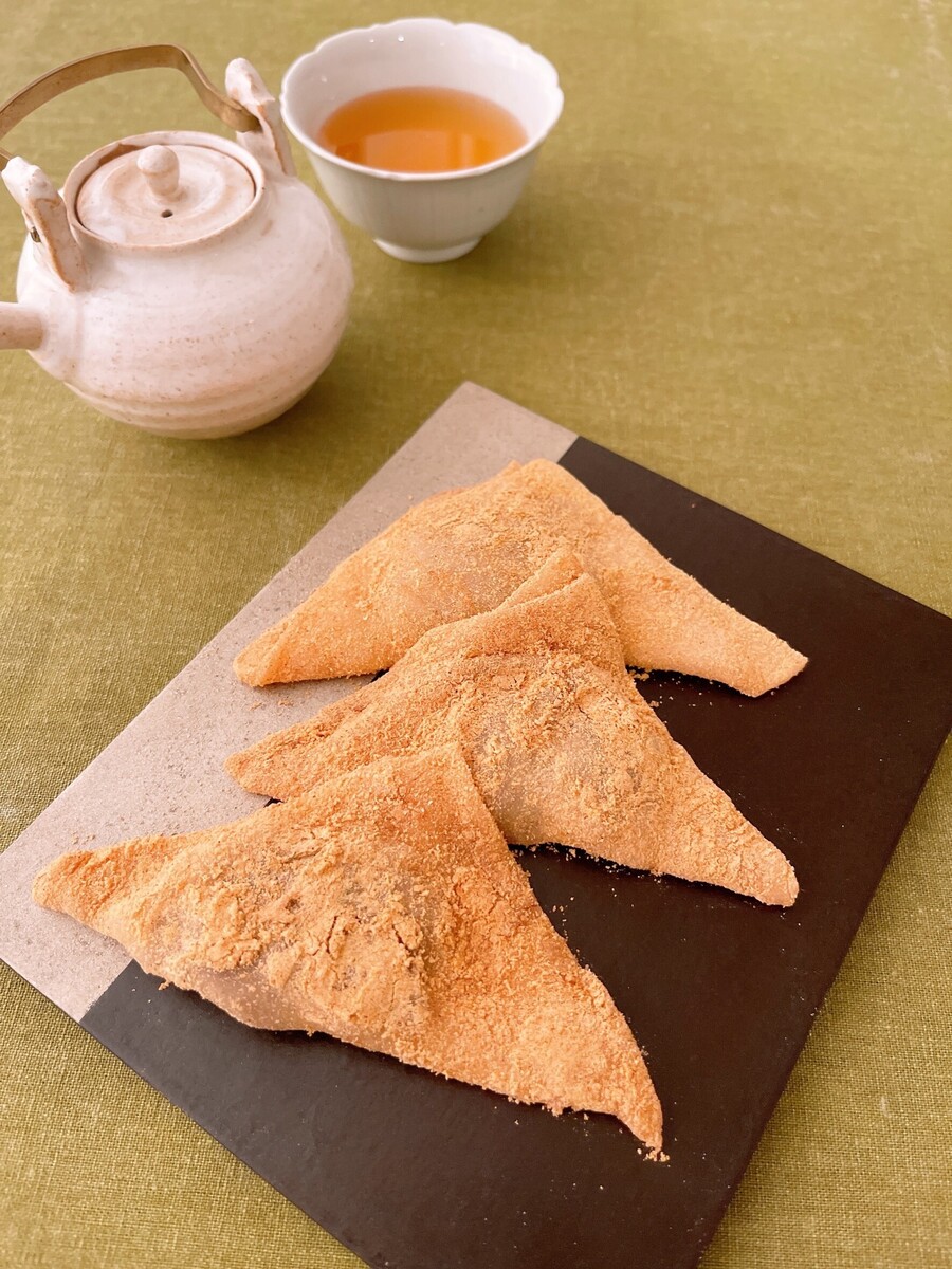 麺棒で薄く伸ばし、4つの四角形に切る。