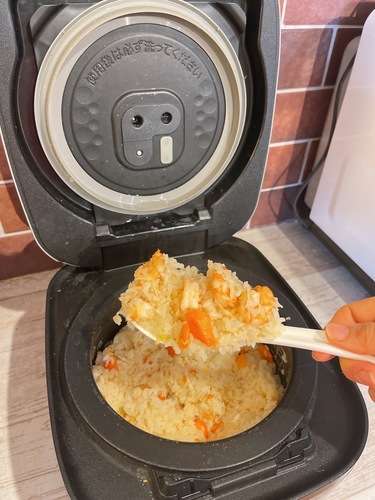「世界一簡単な炊飯器でエビピラフ」