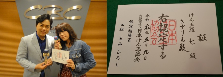 けん玉大使として認定指導員の資格もお持ちなので、今回も検定をお願いし、何と!令和最初の認定証7級を発行して頂きました♪
