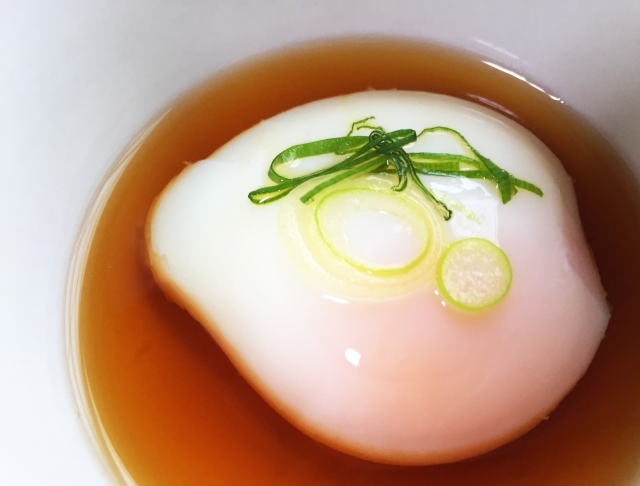 ゆで卵のようで、中の黄身は固まっているけれど、外側の白身の部分はちゃんとは固まっていないというものです。温泉の湯を利用して作ることから、温泉卵と呼ばれるようになりました。