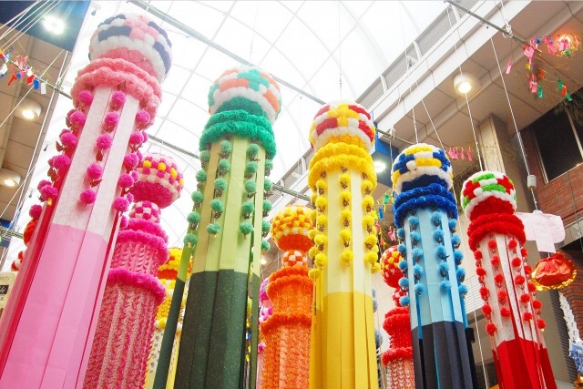 商人たちの盛り上がりから再興した仙台の七夕まつりは、商店街のアーケードで行われますが、全長で5mの吹き流しが多数立てられます。