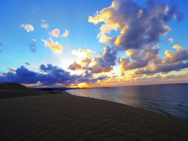 砂の美術館は、鳥取砂丘から道路を隔てたところに2006年にオープンした、砂で作った彫刻作品を展示する世界初の美術館です。