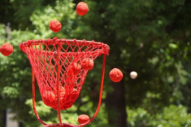 玉入れは、海の中に玉入れの籠を立てます。そこに玉を入れるという形は陸上と同じです。陸上の場合は、玉は地面に無数にあるのですが、海の中だとどうなるのでしょうか?