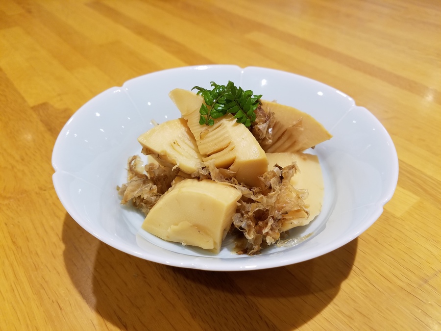 こちら、竹の子の煮物なんですが、ダシをとらずに、ダイレクトに削り節を入れるという、ちょっと変わった煮方をするお料理なんです。