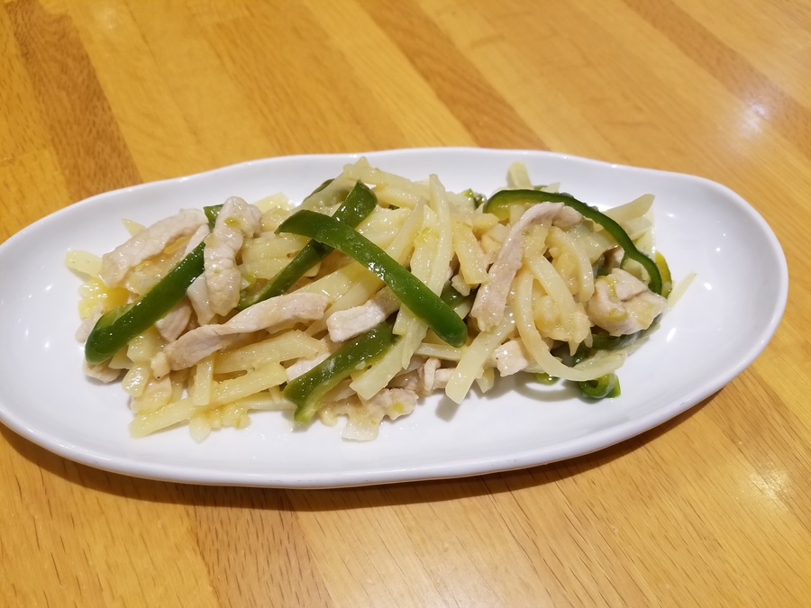 ①:ジャガイモは太めの千切りにし、水にさらしてアクを抜き、