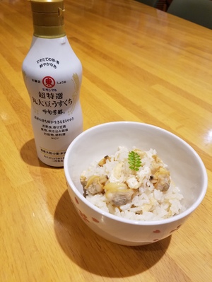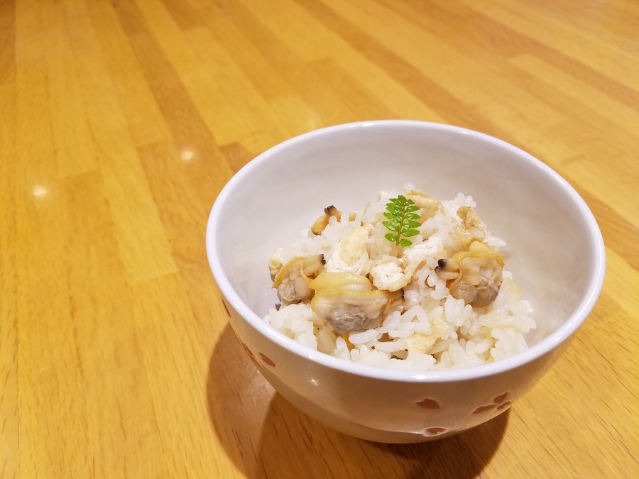 炊きあがったら、⑤のあさりを加え、手早く混ぜ、フタをして、