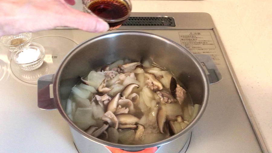 さて、最後の味付けですが、淡口醤油と胡椒だけ!