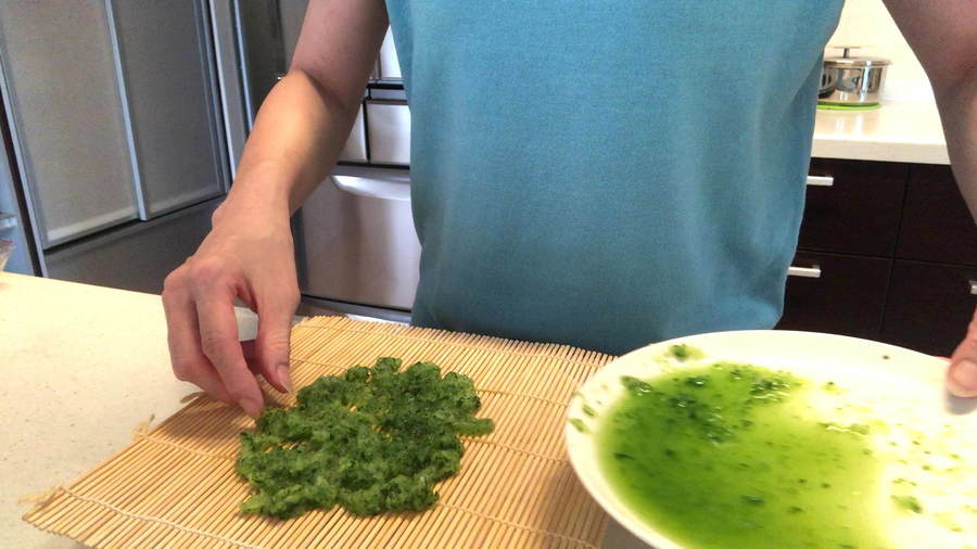 塩気を洗い流したらおろし金ですり下ろし、まきすにのせて5分ほど自然に水を切って冷やしておきましょう。