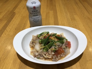 ①:豚バラは3cm幅に切り、淡口醤油、酒、